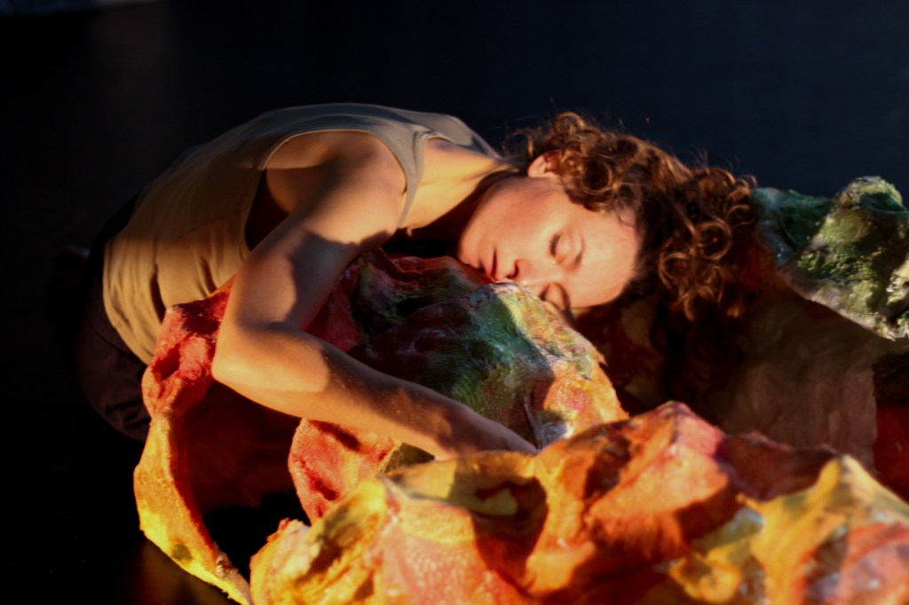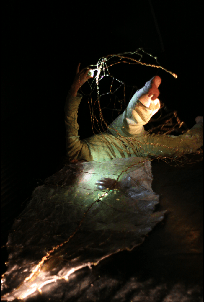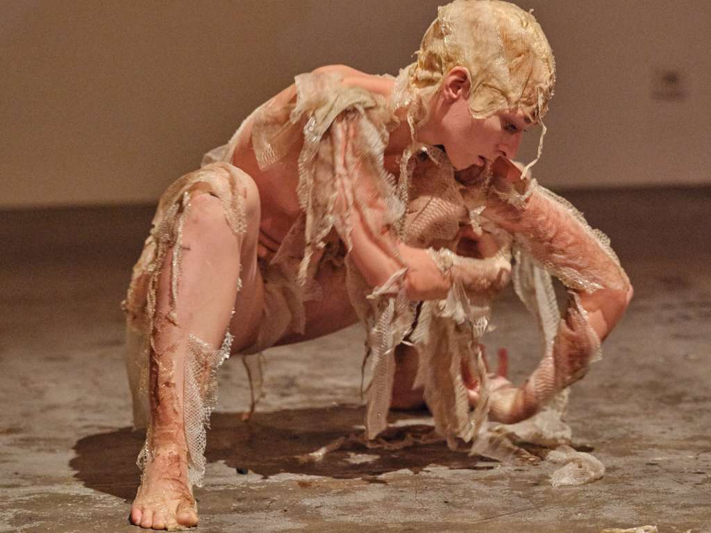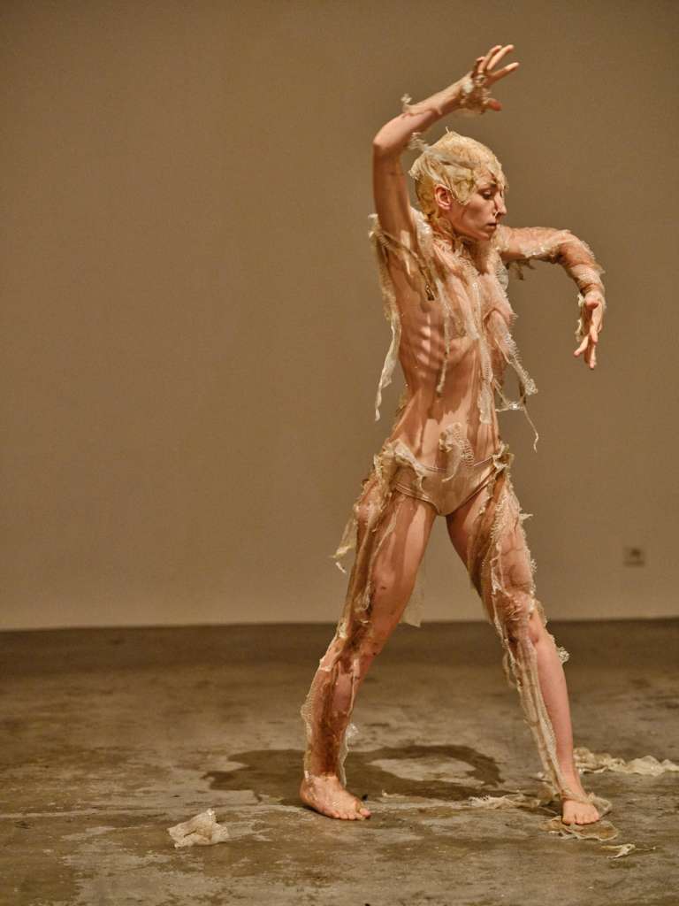 La performance a pour point initial d’animer la mue par le corps, matière organique, frêle : la
